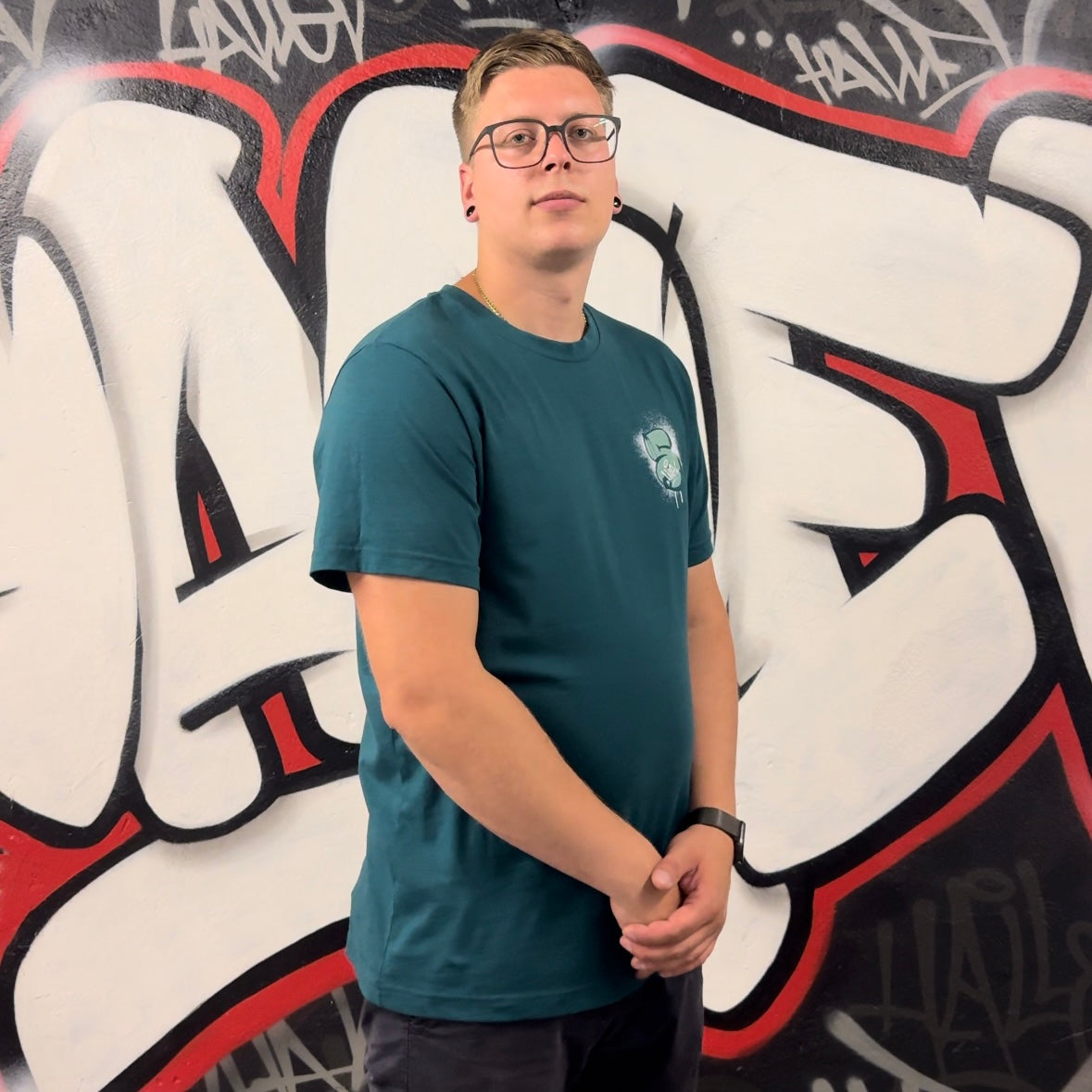 Basti ist 187cm groß und trägt auf dem Foto XL