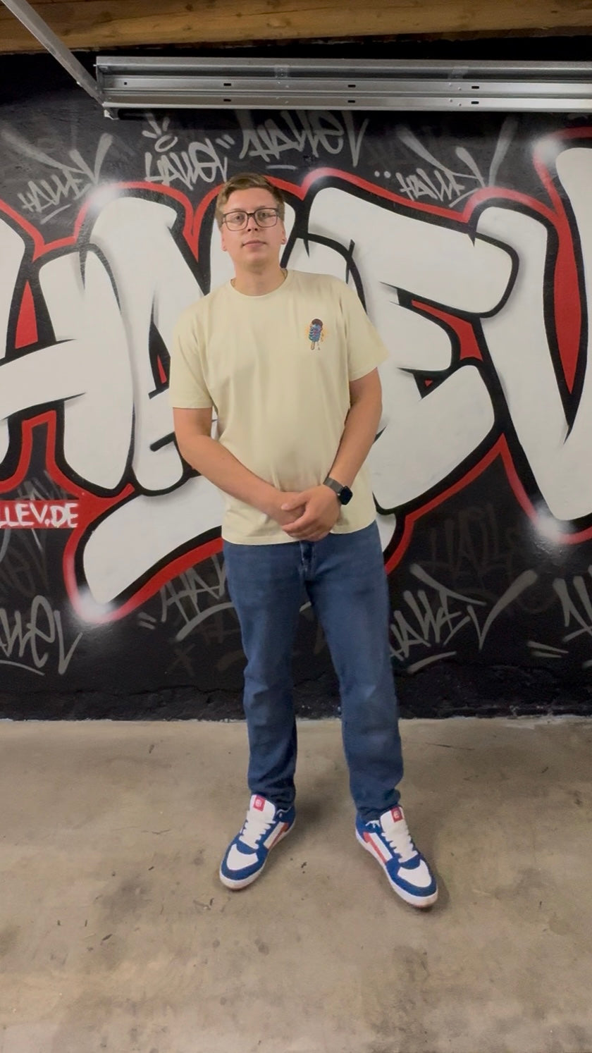 Größen: Wenn es nicht so locker sitzen soll, bestell lieber eine Nummer kleiner. Basti ist 187cm groß und trägt auf dem Foto L
